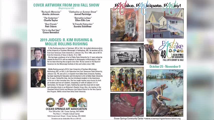 The 48th annual Ocean Springs Art Association Exhibit and Sale is set to kick off next weekend, October 25th. Here to tell us about the 2019 p’ARTake Exhibit and Sale that will showcase over 250 pieces of art are Gail…