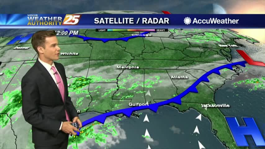 The cold front slowly moving into the area continues to bring cloud cover and a few showers, but more Fall like weather is on the way....